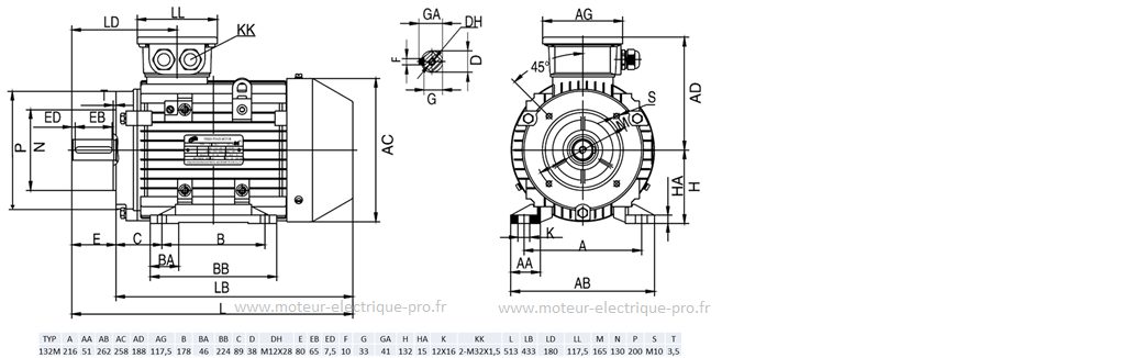 Existe aussi en version à bride B5 et avec pattes et bride B35.