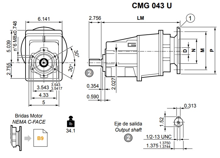 Le plan du réducteur CMG043 est donné ci-dessous: